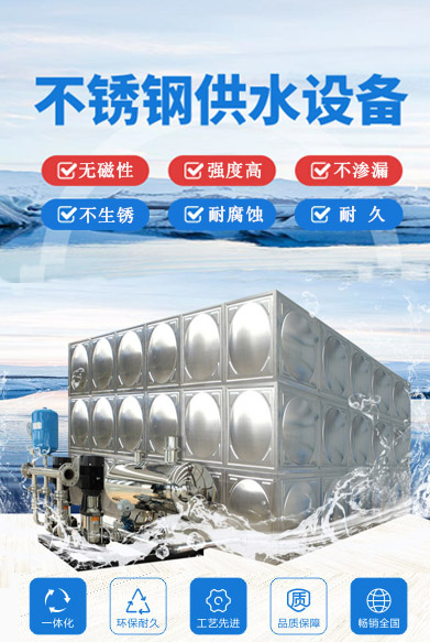 不銹鋼生活水箱特點:1、水箱模板采用高強度沖壓工藝制作成標(biāo)準(zhǔn)板塊現(xiàn)場焊接而成;2、材質(zhì)選用SUS304食品級不銹鋼,具有較強的耐腐性;3、...
